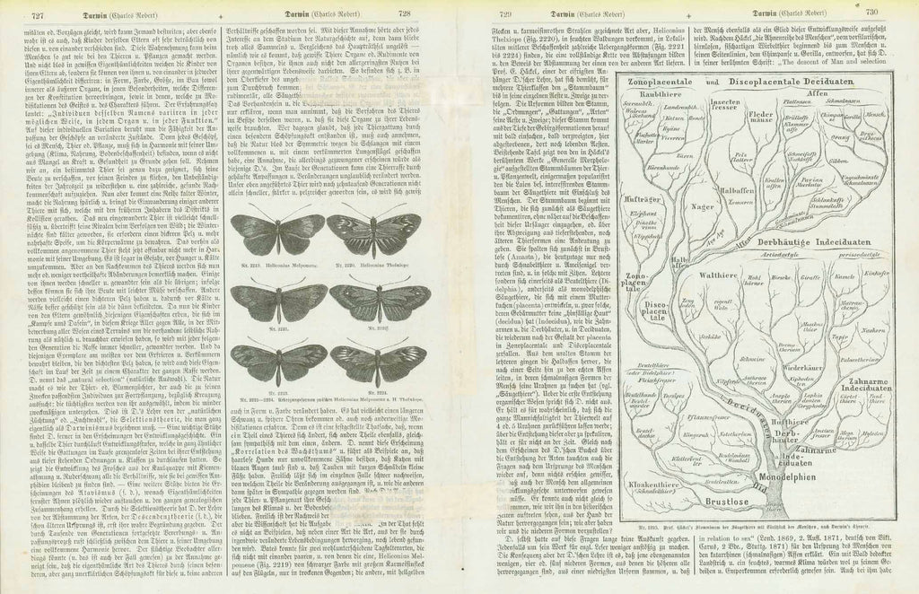 Two pages with wood engravings and text about Darwin's Theory of Evolution.